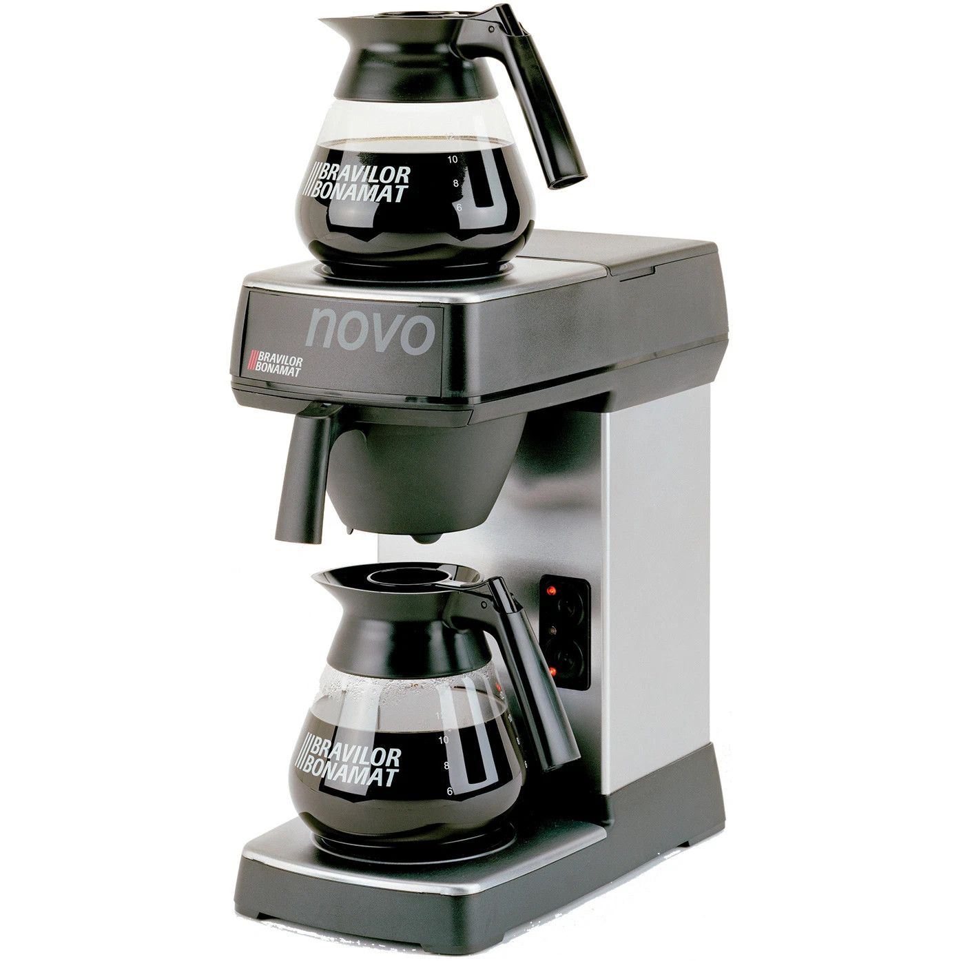 Filterbrygger med 2 varmeplader og 2 kolber. Vi anbefaler at bruge vores kaffe i doseringsposer 65 gram således at kaffen brygges ens hver gang.